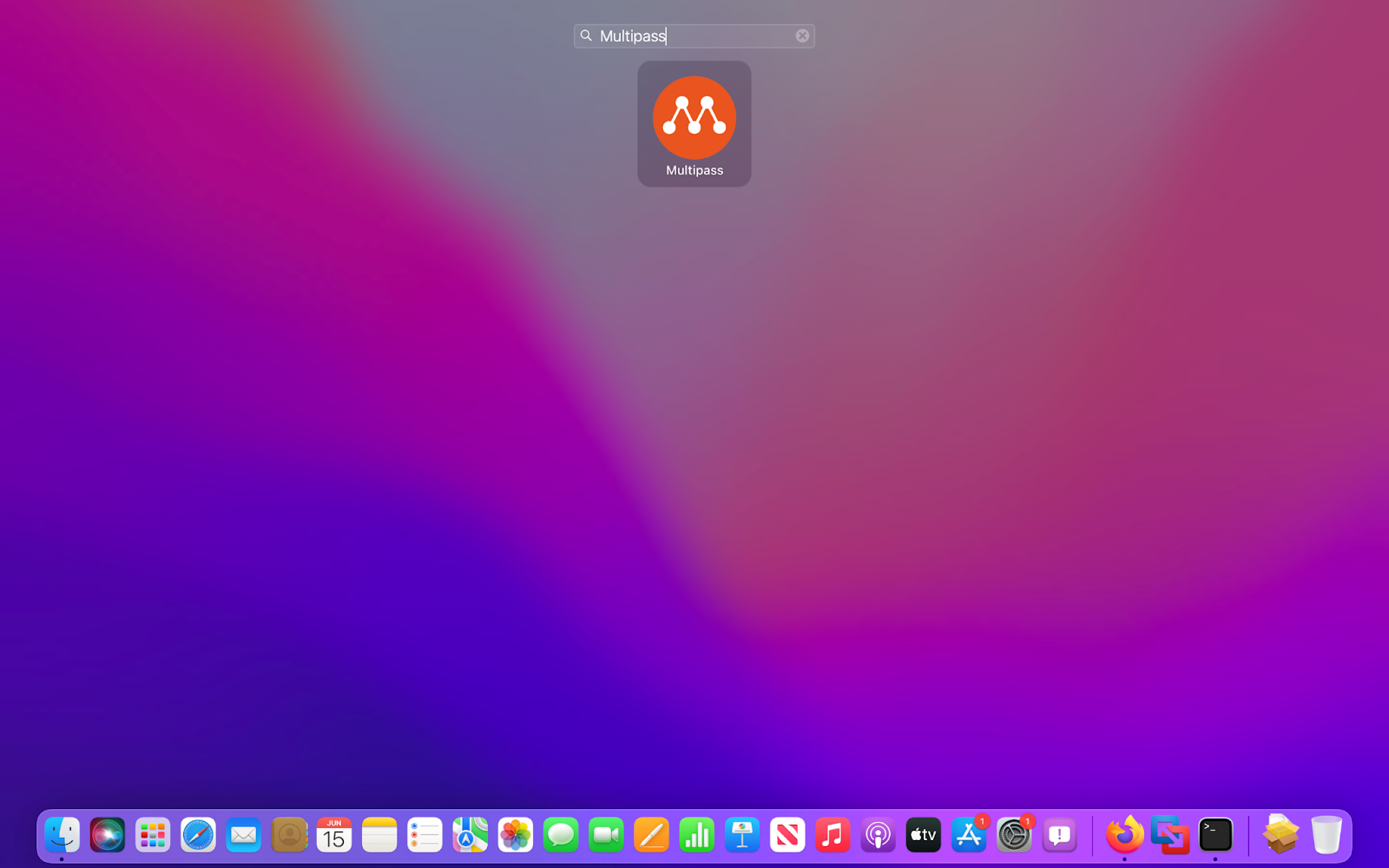 Start Multipass from the application launcher. In macOS, open the application launcher, type “Multipass”, and launch the application.